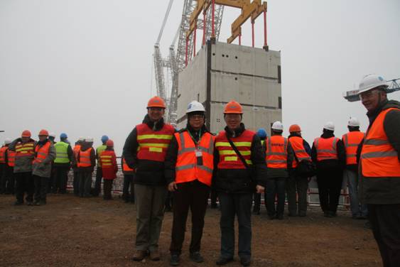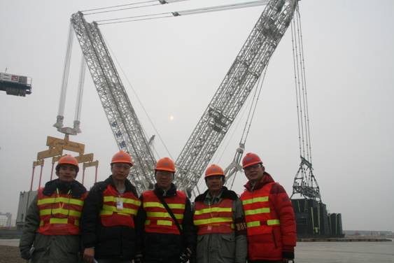 圖7  加固所人員與中核五公司海陽總承包部的管理人員在大吊車現(xiàn)場