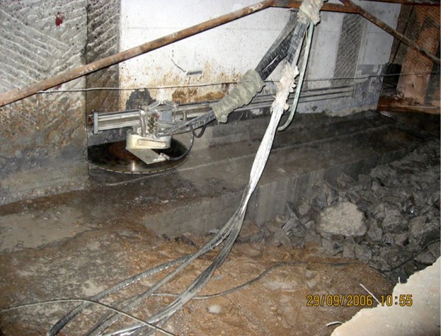 柱截?cái)嗖捎勉@石鏈鋸系統(tǒng);墻體截?cái)嗖捎冒胱詣?dòng)推進(jìn)式墻鋸系統(tǒng)。