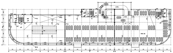 根據(jù)經(jīng)營要求,建筑物東側(cè)單體需進(jìn)行加層改造,加層后,原五層頂屋面變?yōu)榱鶎?,作為車庫或?jīng)營使用,原五層新世紀(jì)影城搬遷至新建七層。加層設(shè)計(jì)時(shí),結(jié)構(gòu)標(biāo)高布置需在滿足影廳凈高要求的同時(shí)兼顧新加樓層與周邊建筑物車道的交通銜接、屋頂涼水塔、影院放映廳、已有樓梯、電梯等,平面、剖面布置較為復(fù)雜,剖面見圖2。