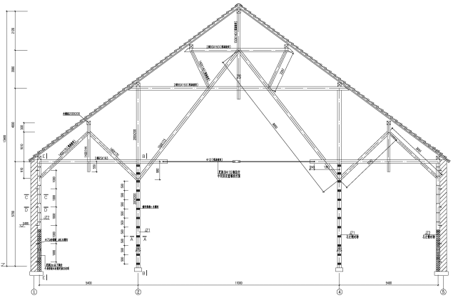 濟(jì)南成豐面粉廠位于濟(jì)南市天橋區(qū)成豐街北側(cè),由苗氏實(shí)業(yè)家于1921年創(chuàng)辦,至今已有90余年歷史。成豐面粉廠建成以后,由苗家出資鋪設(shè)了一條東西走向的街道,命名為“成豐街”,沿用至今。保留需加固的廠房亦建于1921年,系濟(jì)南市近代中西合璧的歷史優(yōu)秀建筑之一,建筑物南北山墻曲線形的山尖和墻飾線腳反映出巴洛克風(fēng)格。主體結(jié)構(gòu)為單層磚(石)結(jié)構(gòu),除北側(cè)山墻全部為清水磚墻外,其余三面維護(hù)墻1.67m標(biāo)高以下為毛石墻體,1.67m標(biāo)高以上為清水紅磚墻,即“以石墻為基,以磚墻為體”。毛石條形基礎(chǔ),木結(jié)構(gòu)屋蓋,屋頂掛粘土紅瓦(圖1),內(nèi)部承重結(jié)構(gòu)為9榀木架(圖2)。
