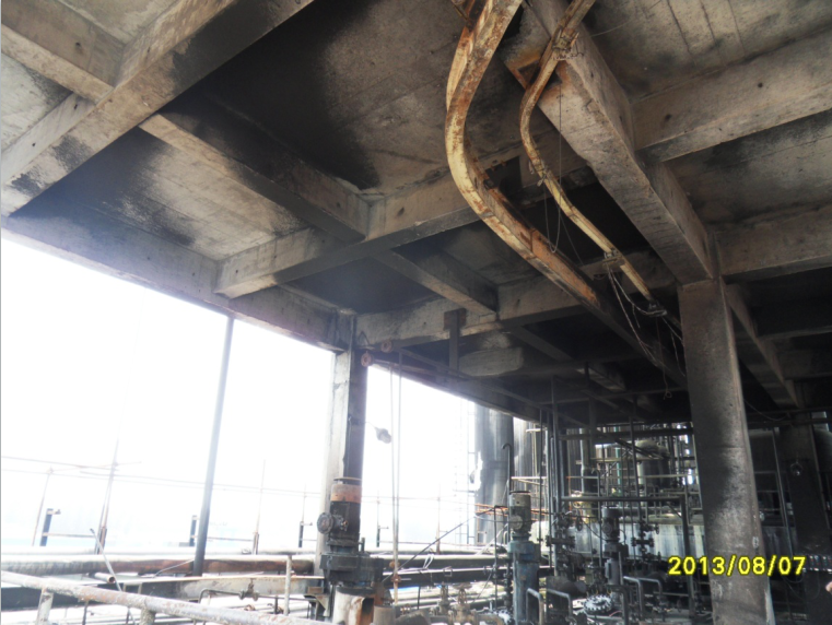魯西化工集團股份有限公司雙氧水裝置主框架位于魯西化工工業(yè)園內(nèi), 4層框架結(jié)構(gòu),建筑總高度為31.00m。2013年07月27日下午16時45分左右,雙氧水裝置萃取塔失火發(fā)生爆炸,之后消防隊員趕到,進行了撲救,雙氧水裝置萃取塔著火時間約11小時。